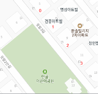그림에서와 같이 1,2,3번 토지는 어린이 공원에 접해 있습니다.